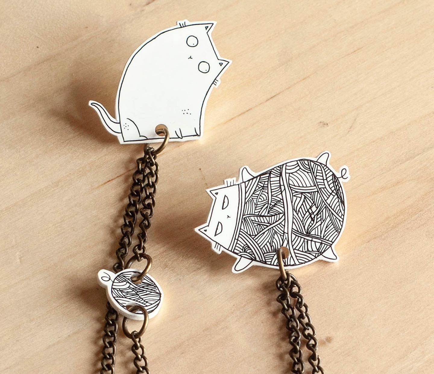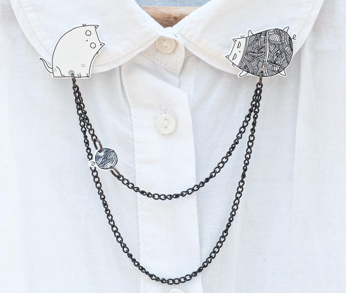 A super cute collar clip chain featuring 2 cute Cats and a wool yarn :)