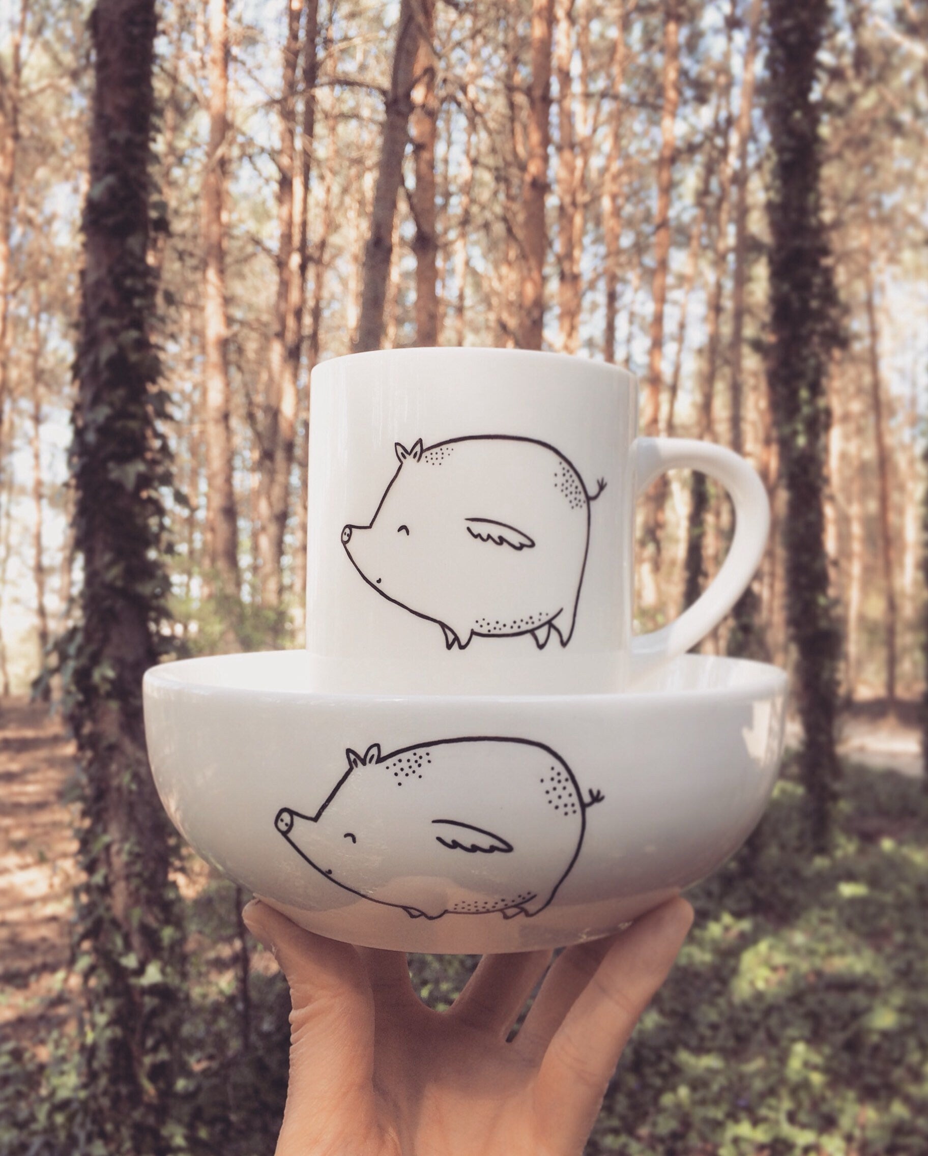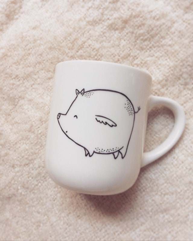 Please, treat your mug with care and try not to use any abrasive materials on surface - Mr. Piglet is a very pleasant animal but he doesn't like being provoked and can get a bit violent :) And please, bear in mind that each mug is hand-painted so each design will be slightly unique.