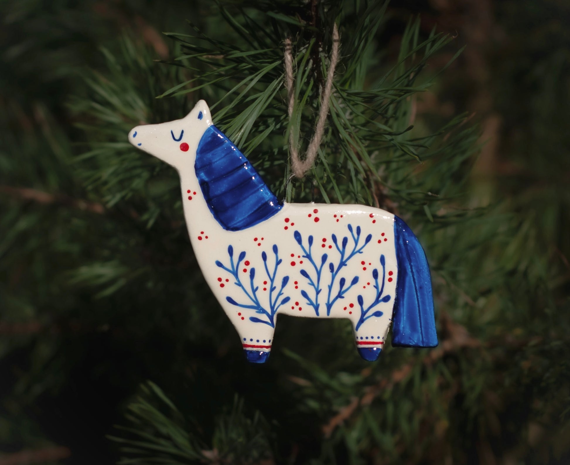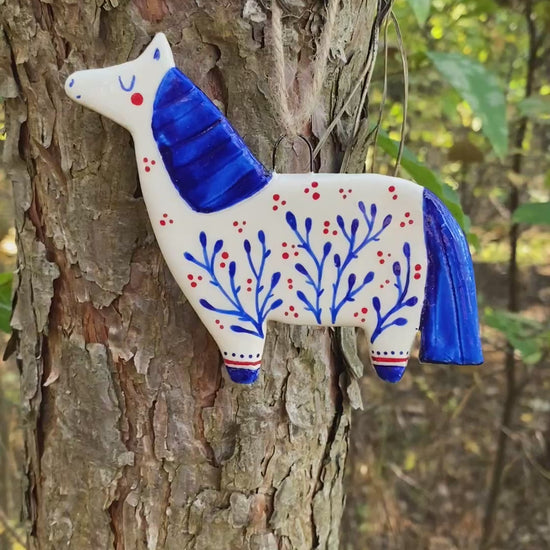 A unique and cute ceramic Folk Horse who will bring happiness and joy to your life. :) 100% HANDMADE - This sweet little guy is made from scratch: hand-sculpted in clay, dried, sanded, polished, painted with folk-inspired botanical patterns and covered with a few coats of transparent varnish to keep him safe and durable.