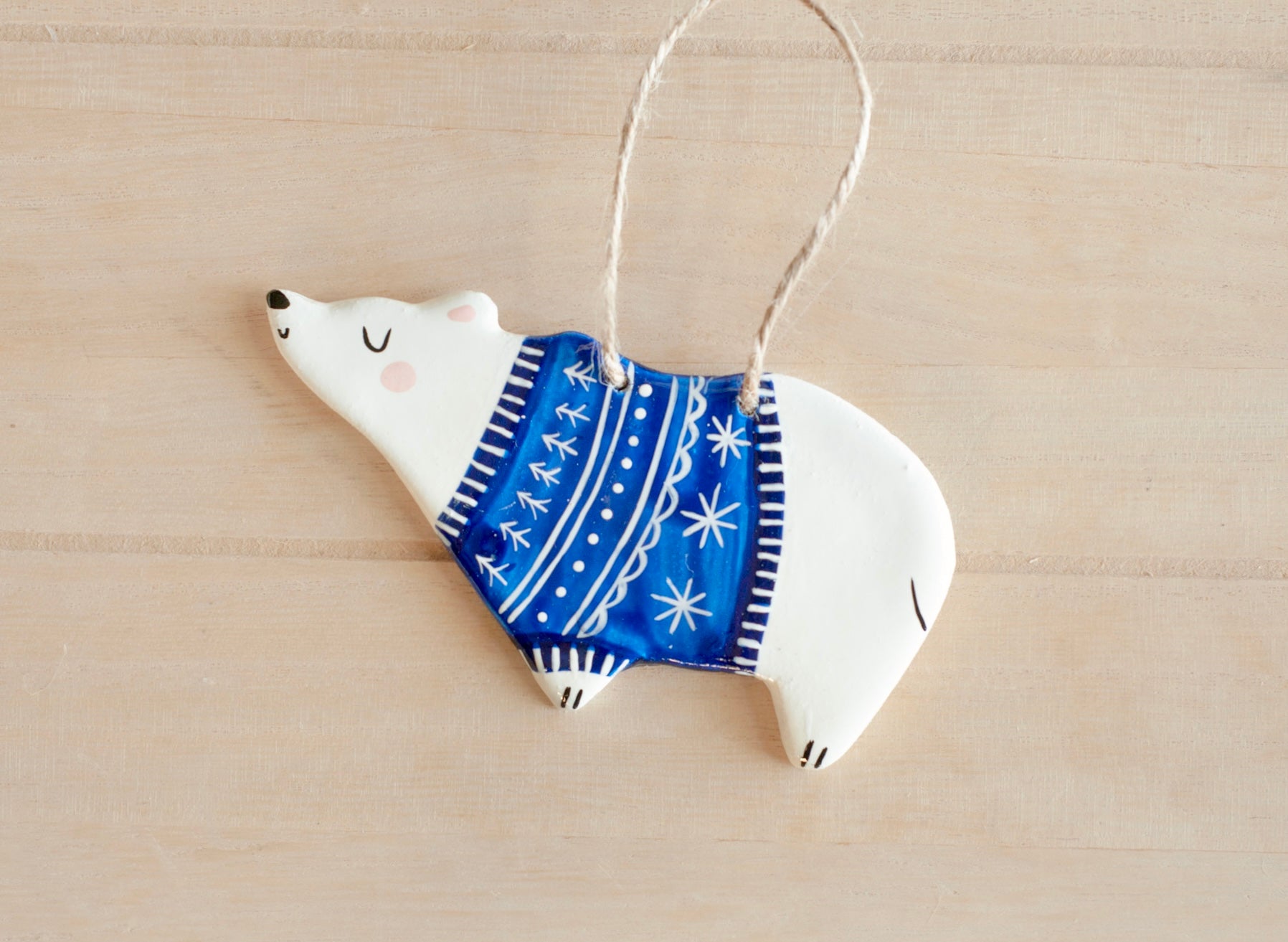 Charming Polar Bear bundled up for winter in his favorite festive sweater :)