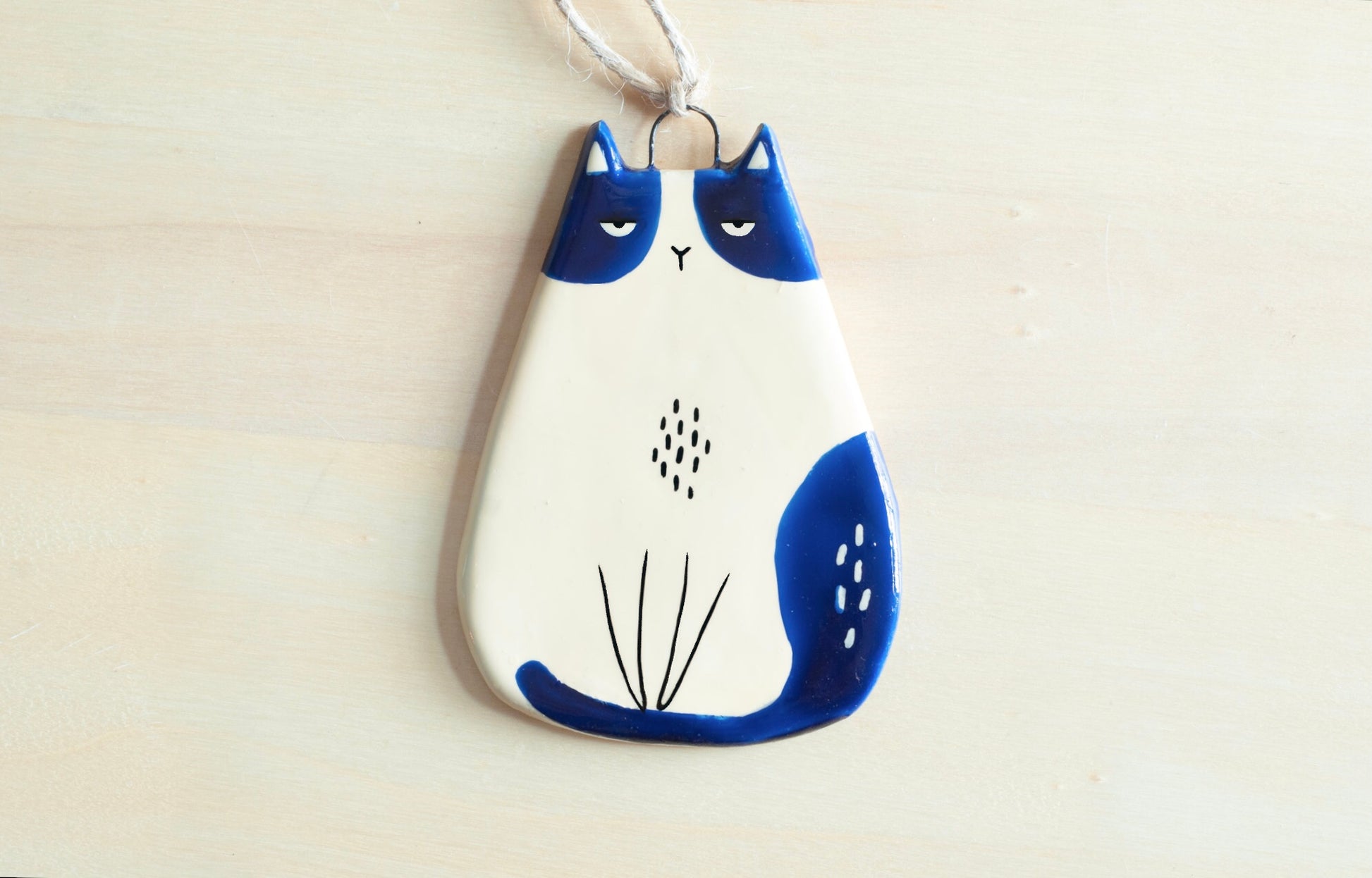 To niewielkie Kocisko zostało wykonane ręcznie z wysokiej jakości gliny, osuszone, wypolerowane, pomalowane farbą do ceramiki oraz pokryte kilkoma warstwami lakieru - dzięki temu ozdoba jest nie tylko bardzo miła w dotyku, ale też odporniejsza na wszelkiego rodzaju czynniki zewnętrzne :)